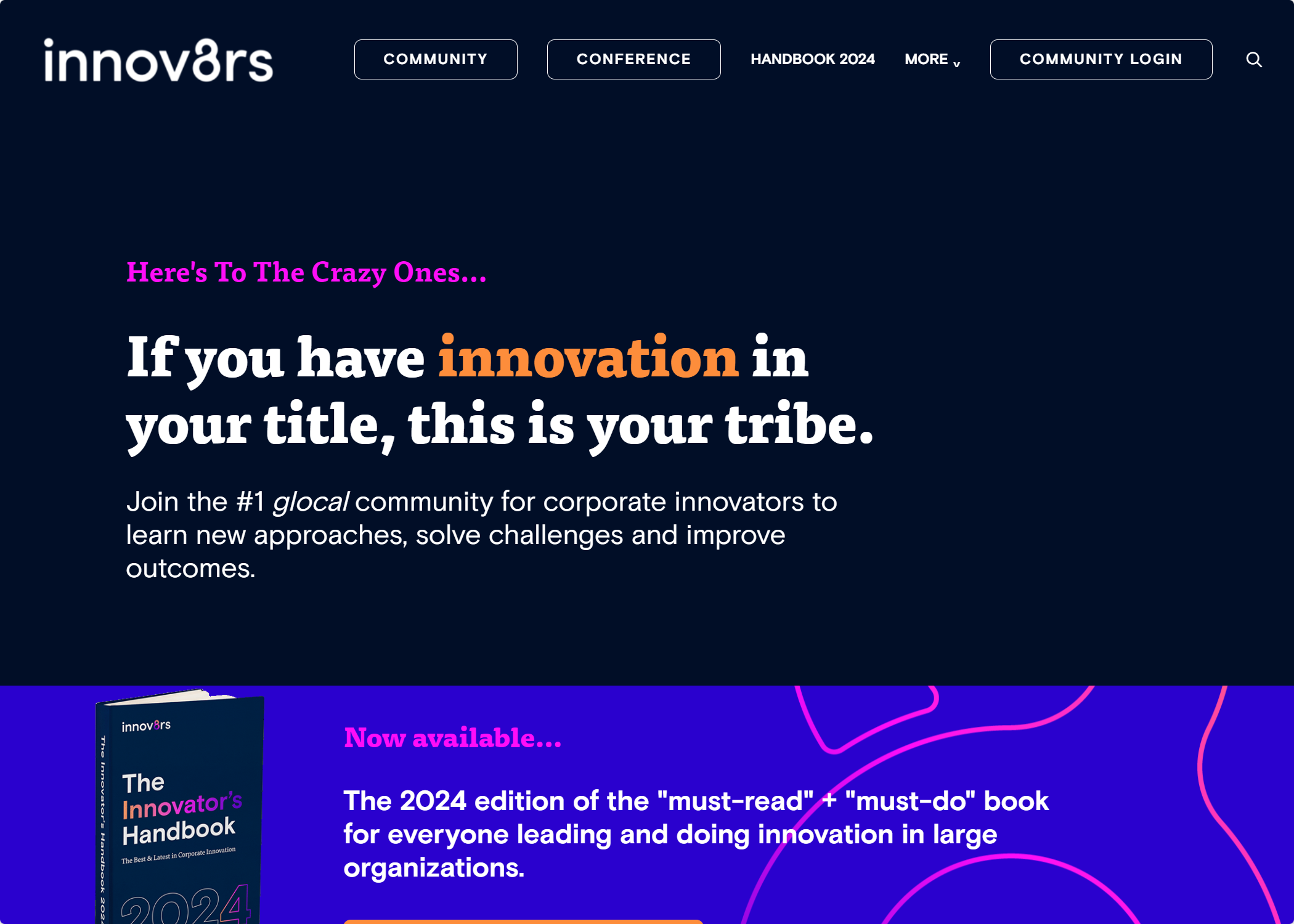The Innov8rs website serves as a dynamic resource for corporate innovators, featuring a community, learning events, and collaboration tools designed to boost innovation within large organizations. It’s streamlined to facilitate easy access to expert insights, practical tools, and networking opportunities.